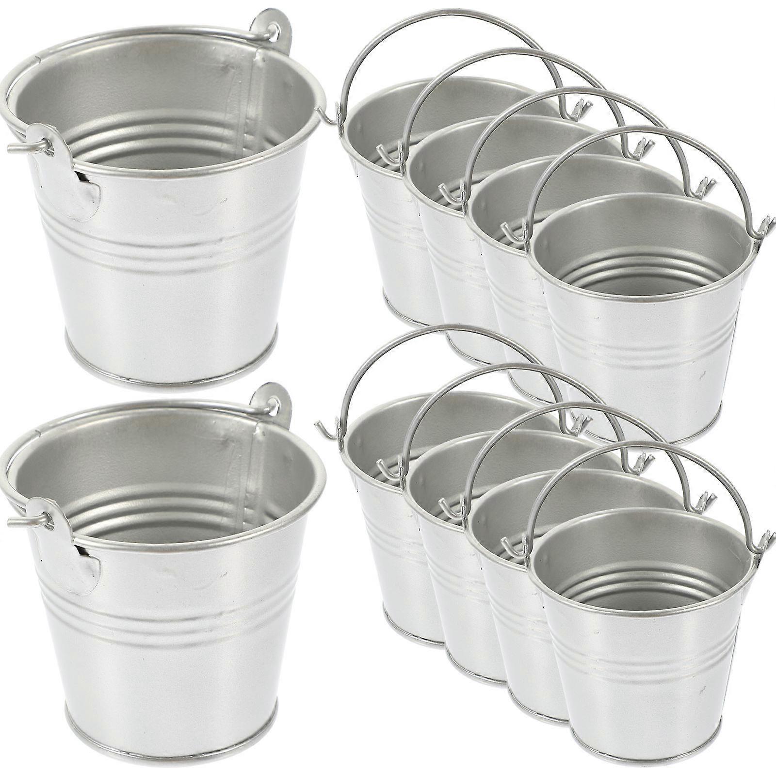 Small Metal Buckets With Handles Iron Storage Bucket Office Supplies Silver Color Round Shape 10Pcs