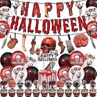 Bloody Zombie Skull Happy Halloween Theme Party Decoration Horror Balloons Bunting Cake Topper Set