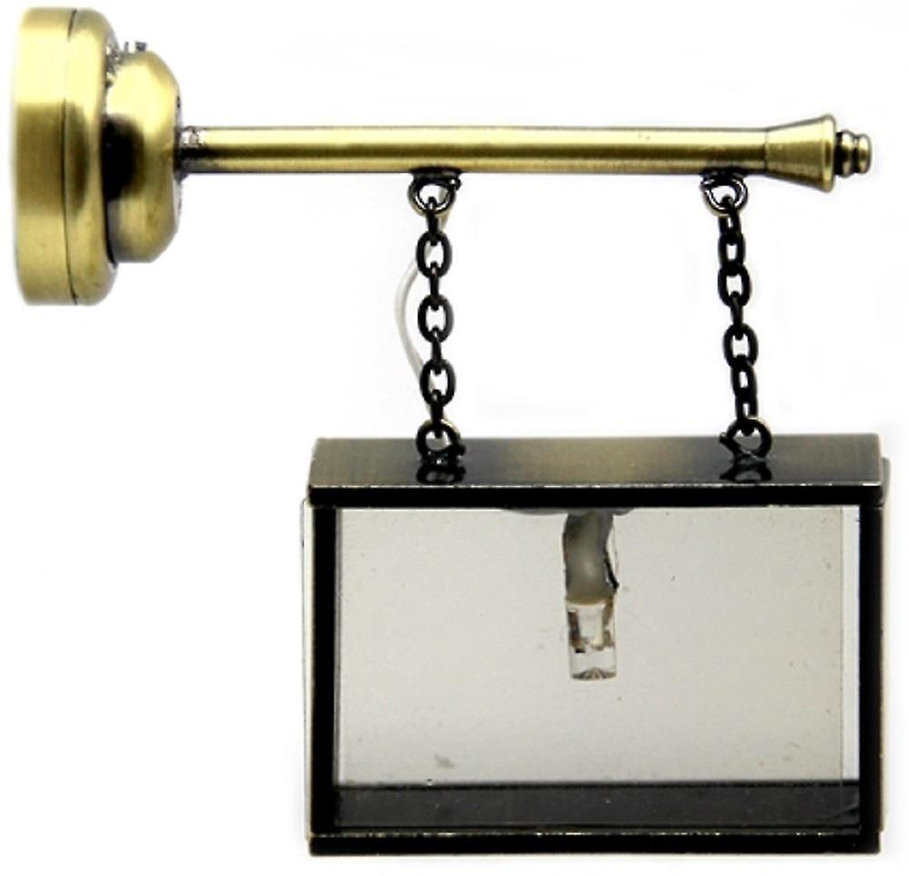 Dolls House Aged Brass Sign Wall Light For Shop Or Pub Miniature Led Battery