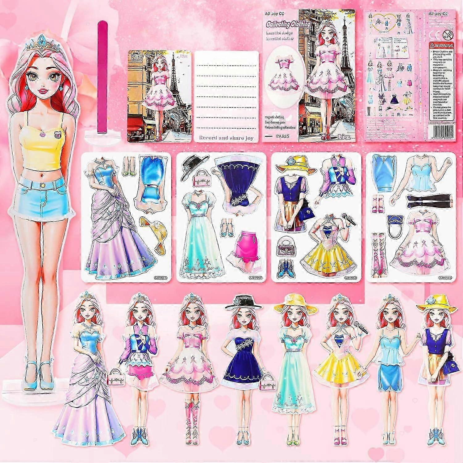 Magnetic Dress Up Dolls, Magnetic Dress Up Paper Doll, Dress-Up Dolls Pretend Play Set Puzzles Toys for Girls Ages 4-7 Develop Creativity