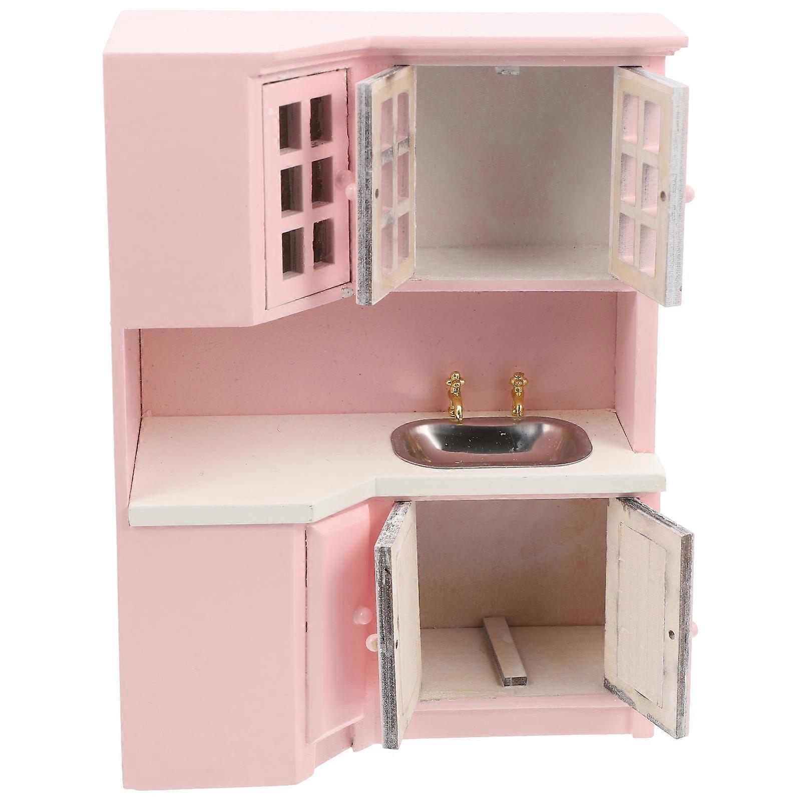 Dollhouse Kitchen Model Mini House Sink Counter Decor Pink Rectangular Doll House Accessory 12.7x5.7x17.5cm 1Pcs