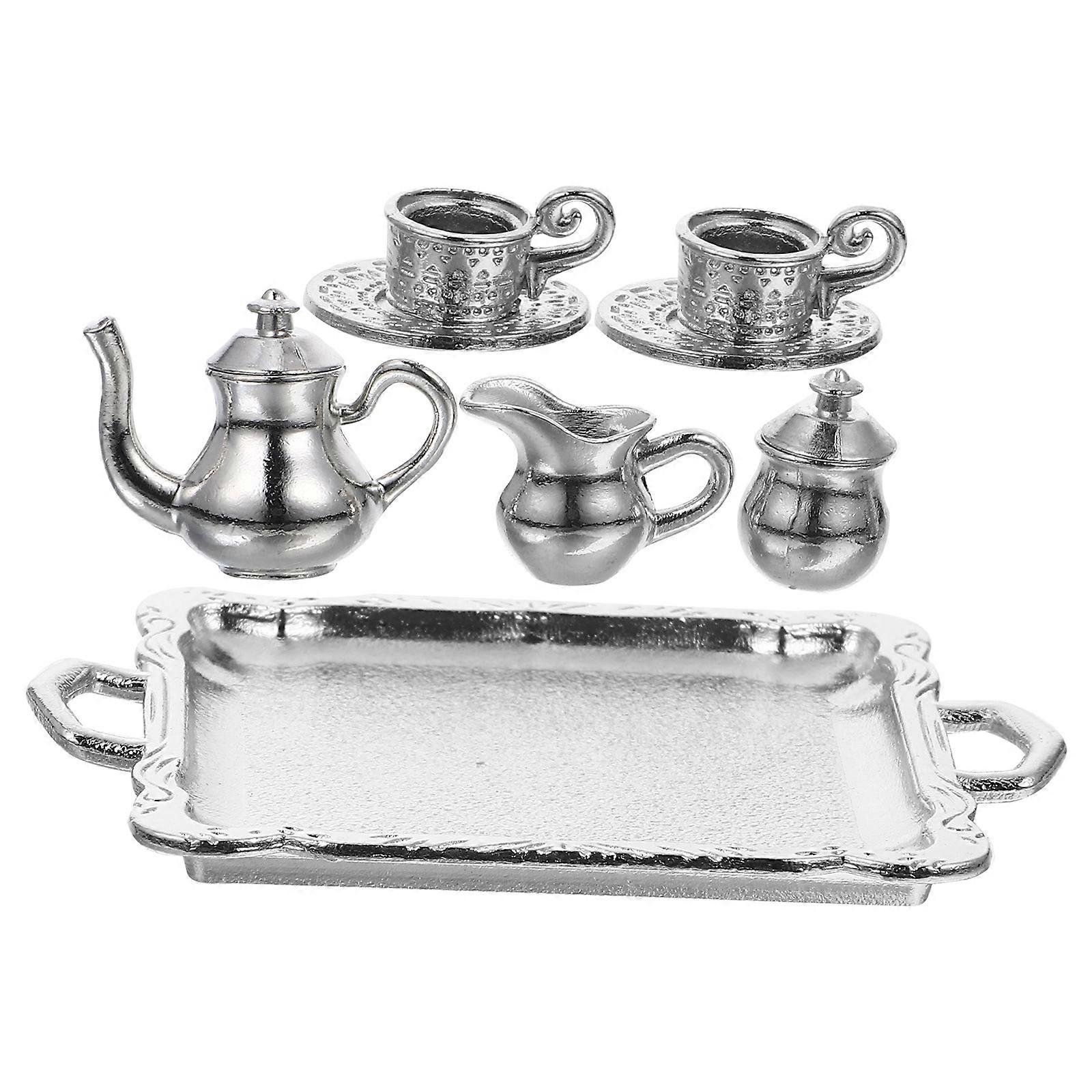 Dollhouse Mini Kettle Cup Miniature Tea Cup Teapot Tray Metal 2.6×1.9×0.4in 1Set