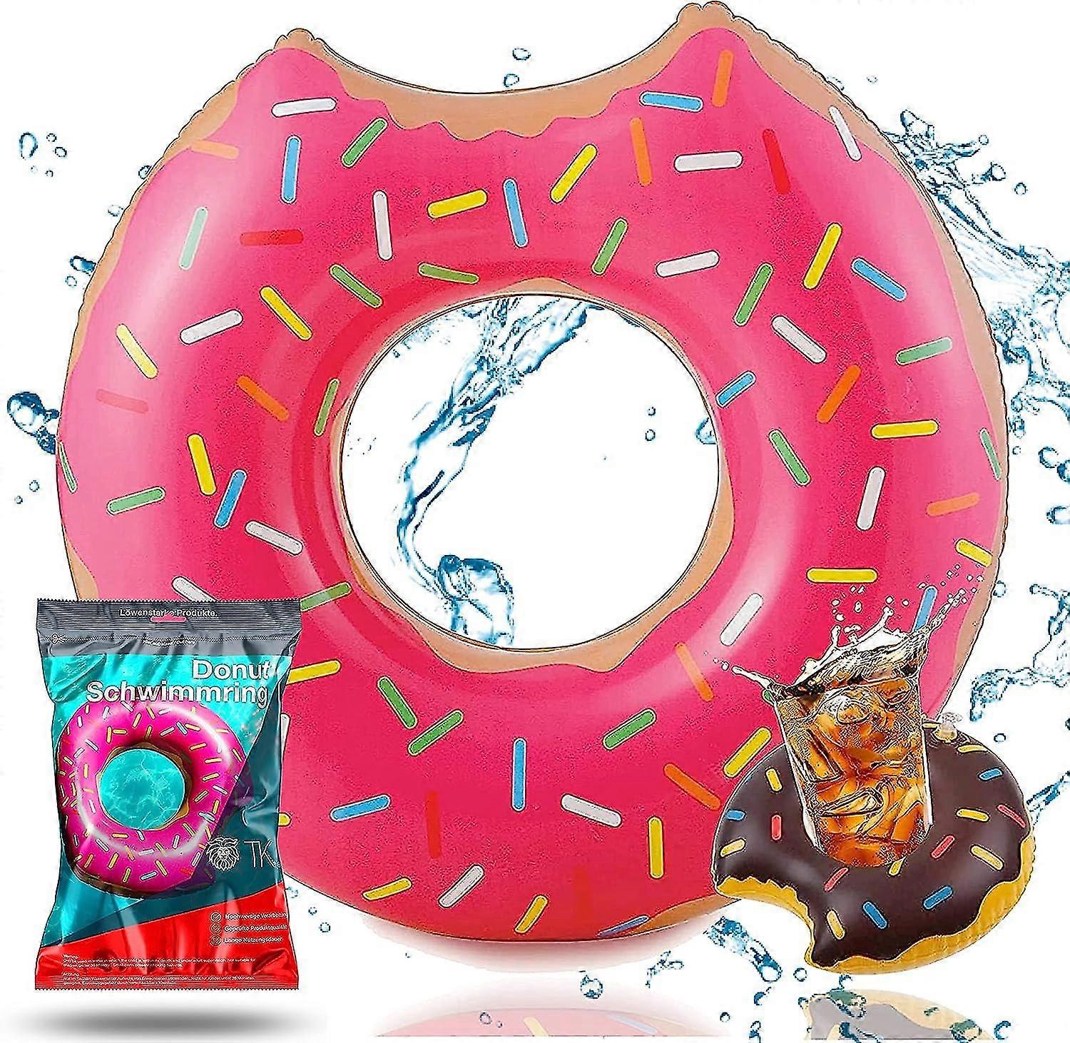 Pink Inflatable Donut 120 Cm With Teething Ring, Buoy, Inflatable Mattress, Bath Cushion, Brown, Pool And Water, With 1x Cup Holder For Adults And Ch