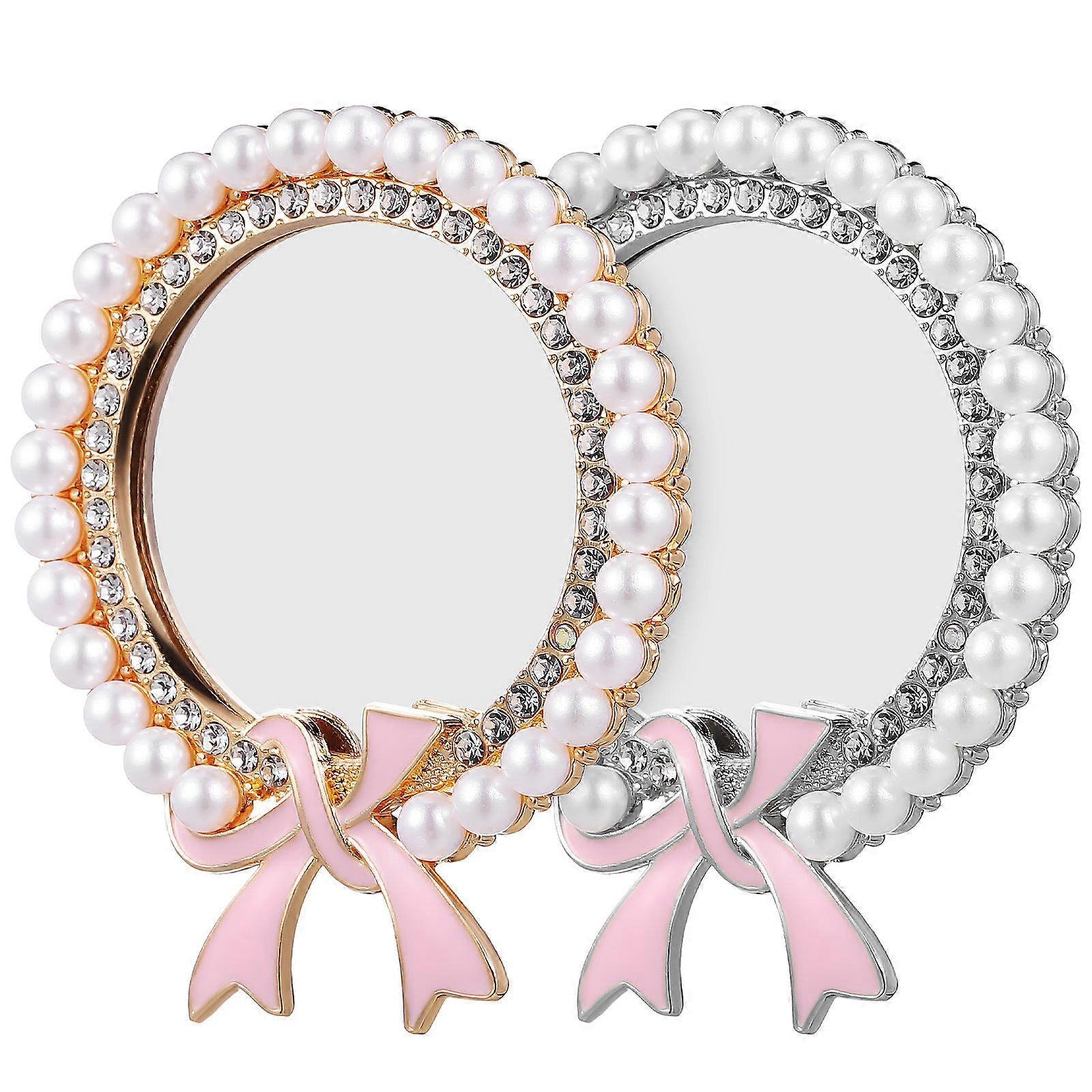 Mini Round Mirror Metal Portable Makeup Decors 6.50X5.50X0.20CM 2Pcs