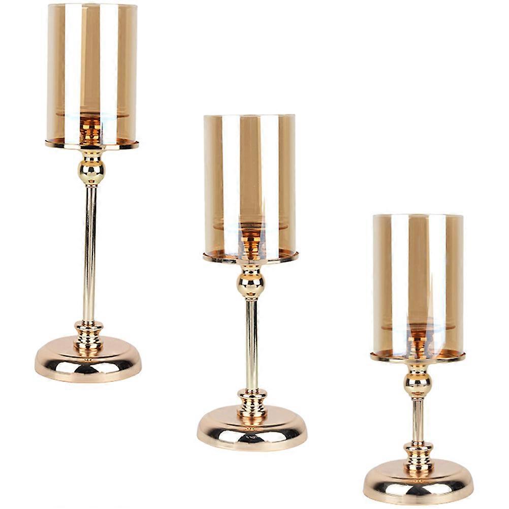 Room Decor European Style Metal Glass Taper Candle Holder Waterproof For Party Small 3Pcs