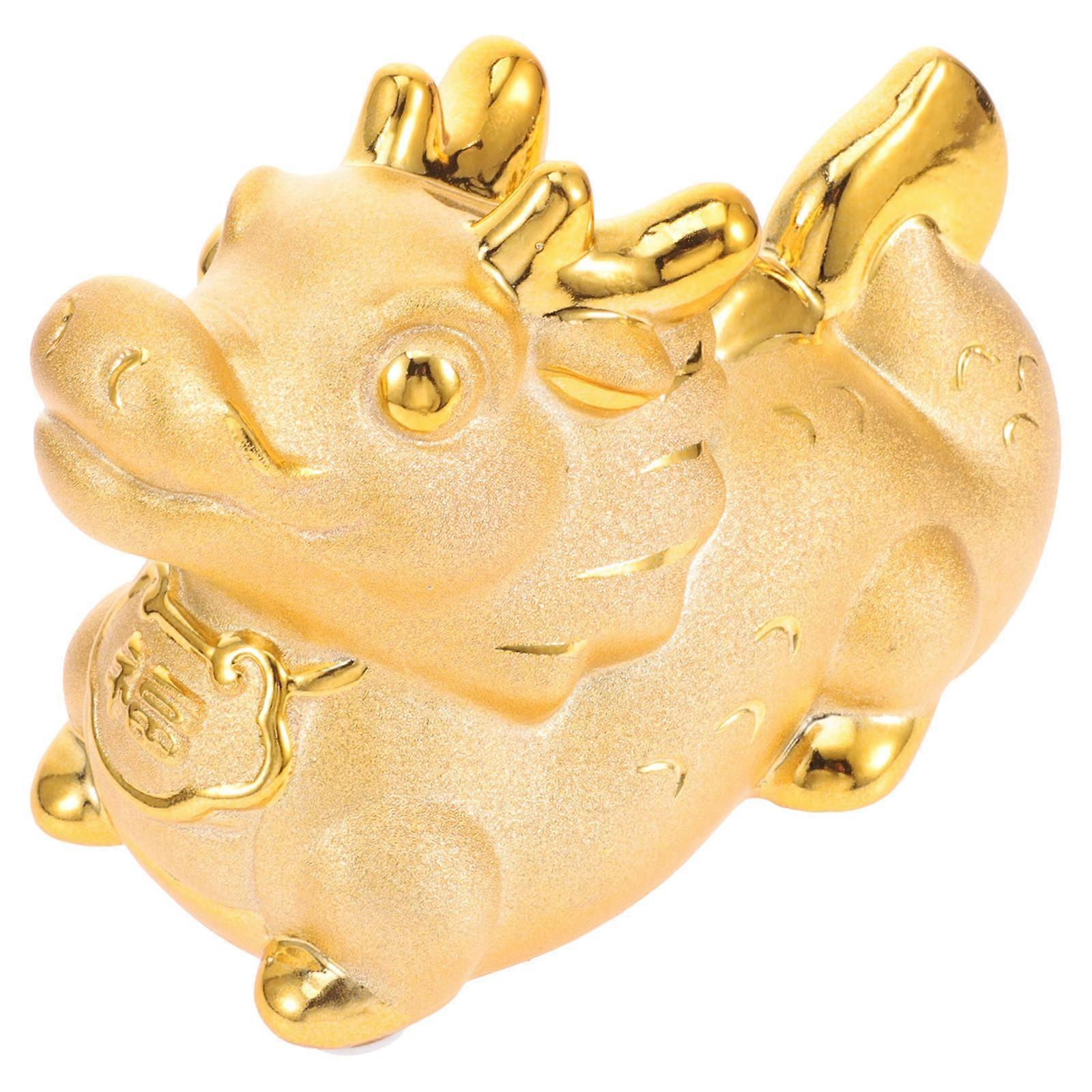 Decorative Money Bank Box Golden White Porcelain Dragon Decor 1Pack