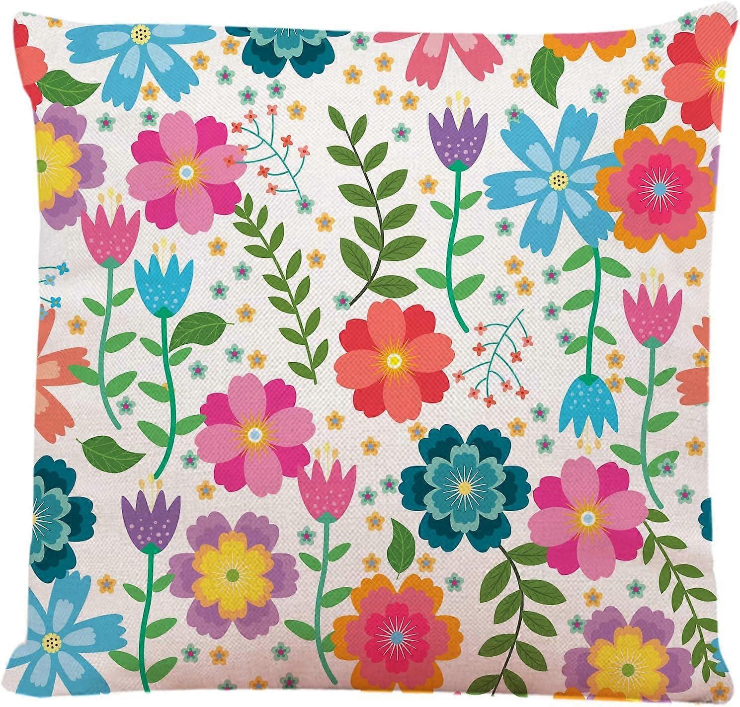 Decorative Square Throw Pillow Covers Folk Flower Hippie Boho Floral Couch Sofa Bed Pillow Covers Cushion Cases 18x18 inch