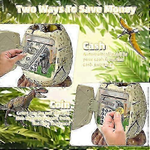 Dinosaur Egg Piggy Bank with Fingerprint Password, Musical T-Rex Piggy Bank For Kids, Money Safe Cash Can Birthday Gift for Boys & Girls