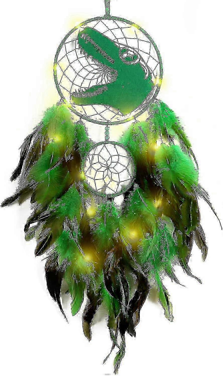 Dinosaur Dream Catchers For Boys Girls, Dream Catcher Light Wall Decor Feather Wall Hanging Dino Dream Catcher Kids Gift