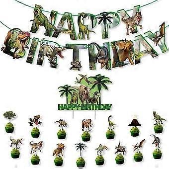 Dinosaur Theme Party Decoration Happy Birthday Banner Flag Dino Latex Balloons Cake Topper Kids Jungle Safari Birthday Decor