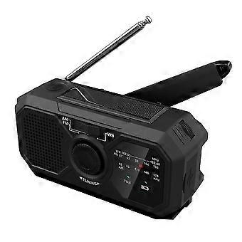 Hand-crank emergency radio, portable, solar charging with mobile phone charger