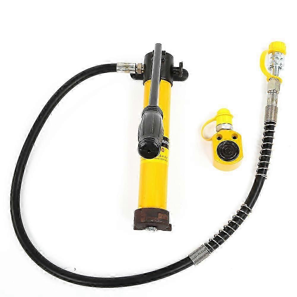 Feature:_x000D_ _x000D_ This hydraulic repair kit is perfect for a variety of car repair, auto truck body, frame repair and construction jobs _x000D_ The product is a separate combination, hydraulic jack and hydraulic pump are separated, easy to carry or move. _x000D_ The maximum load of the hydraulic jack is 5 tons. _x000D_ The product is simple to operate, making it easy to repair the car or lift heavy objects. _x000D_ The long handle hydraulic pump saves more energy in operation. _x000D_ _x000D_ Specification:(Hydraulic Jack)_x000D_ Tonnage: 5T_x000D_ Effective area: 9.61cm2_x000D_ Cylinder inner diameter: 35mm_x000D_ Cylinder outer diameter: 64*48mm_x000D_ Stroke: 7mm_x000D_ Body height: 41mm_x000D_ _x000D_ Specification(Pump):_x000D_ Rated pressure (kg/cm2): 700 (high pressure), 20 (low pressure)_x000D_ Rated flow rate (cc/min): 1.8 (high pressure), 13 (low pressure)_x000D_ Oil storage capacity (cc): 350_x000D_ _x000D_ Package list:_x000D_ 1 * Hydraulic Jack_x000D_ 1 * Manual hydraulic pump_x000D_ _x000D_ Note:_x000D_ The actual product color may deviate from the photo due to light._x000D_ There may be a slight deviation in the measurement of product.