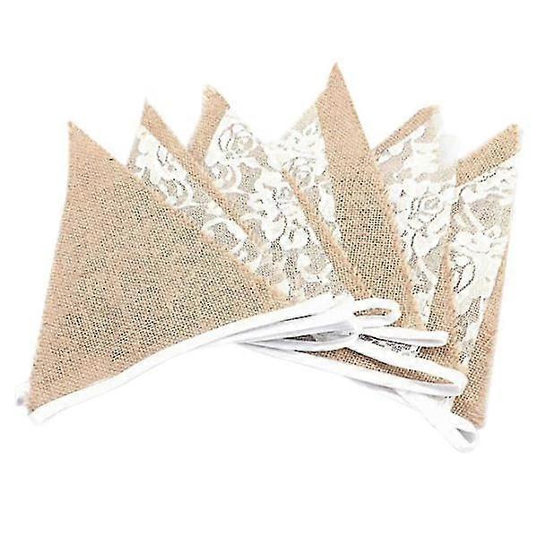 Pennant banner in linen and burlap with lace flowers, wedding party, cafe decor Elik