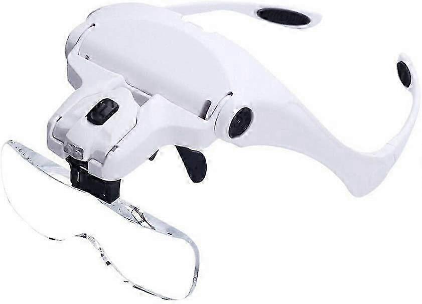 Head Mount Magnifier, Bysameyee Lighted Magnifying Headband Glass Loupe Visor with 2 LED Light
