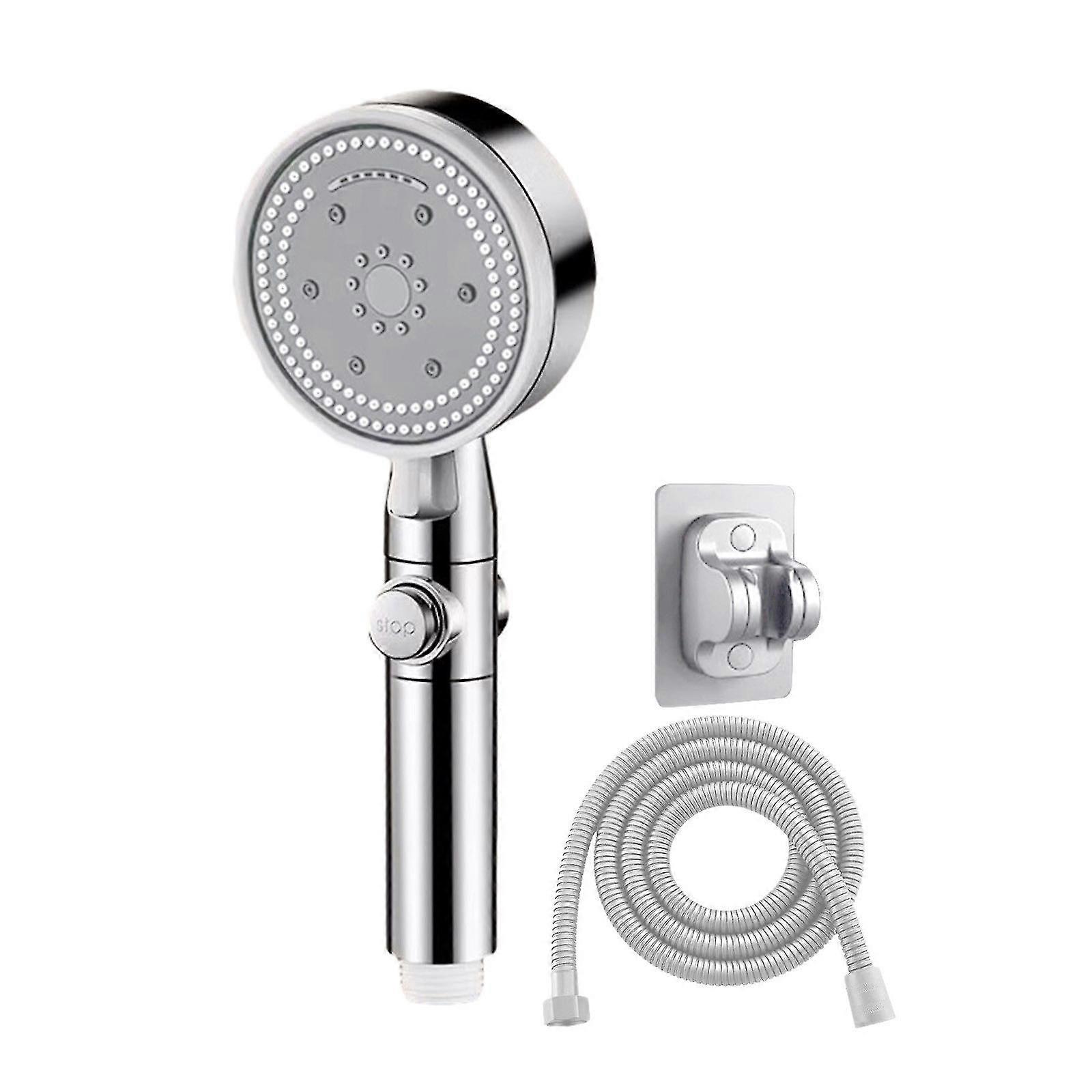 Shower Head With Handheld High Pressure 8 Spray Modes Body Coverage Powerful Rain Showerhead With 78in Long Hose And Adjustable Holders For Bathroom Upgrade Feature: Material: ABS Color: Sliver Product size:249cm/9.453.54In Packing size:23.9796cm/9.443.542.36In Water Pipe:200cm/78.7in Net weight: 360g/0.8lb Gross weight: 360g/0.8lb Features: 8-speed Adjustment, Top Water Spray, High Pressure Descrition: Hand Helds Shower Head SetThe 8-functions high pressure shower head good kit comes with 78 inch stainless steel extened hose, adjustable joint overhead bracket. You can easily install without any tooling in minutes. Craftsmanship- Compared with other ordinary filter shower heads, filter shower heads are designed with silicone nozzles. It will give you a better experience. High Pressure Shower Head- This high pressure shower adoptspressurization technology, which can effectively increase the water pressure. Good for low water pressure. With top water spray function. 8 Modes and One-Hand- This hand shower has 8 different modes. Perfect for the elderly, children, providing a relaxing shower experience for your family. The one-hand makes it easier to change shower modes than common filter showers on the market. Easy to Install- High pressure hand shower shower stand. This shower set is universal standard size, easy to install, no tools required. The perfect bathroom shower upgrade option. Package Content: 1 x Shower 1 x Water Pipe 1 x Base