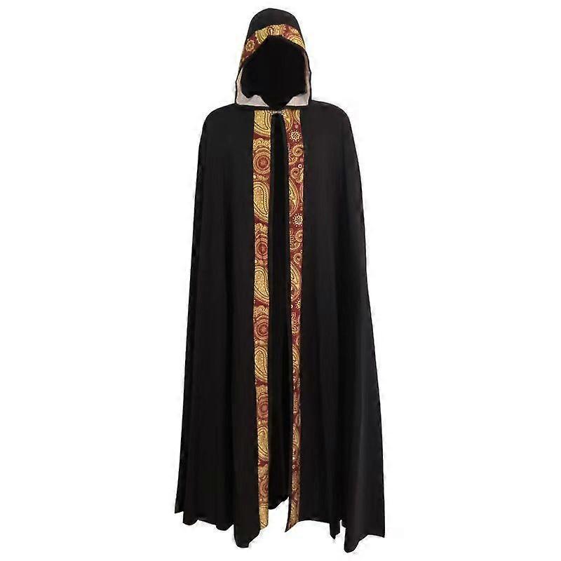 Men's Gothic Hooded Long Cloak Medieval Style Robe Cape with Embroidered Trim 5 Color Options