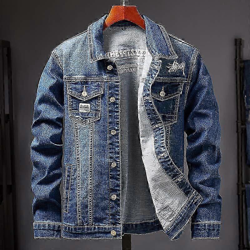 Mens Denim Jacket Classic Western Style Casual Slim Fit Ripped Jeans Coat for Men Oversized Jean Jackets