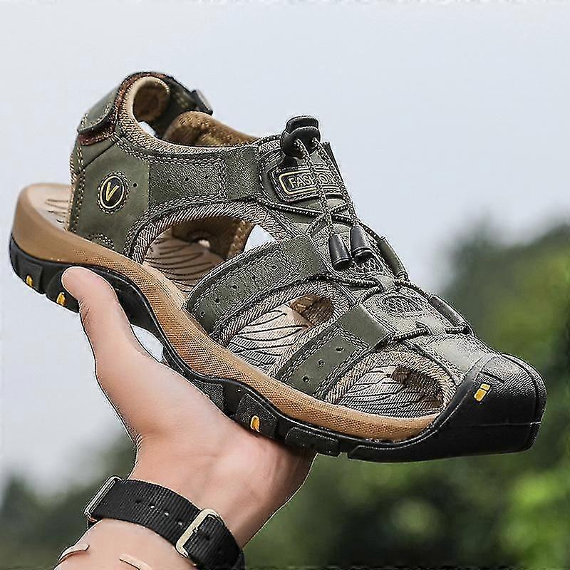 رجالي صندل جلد طبيعي أحذية رجالية لفصل الصيف كبير الحجم في الهواء الطلق أحذية المشي ذكور الصنادل رجل النعال بالإضافة إلى حجم