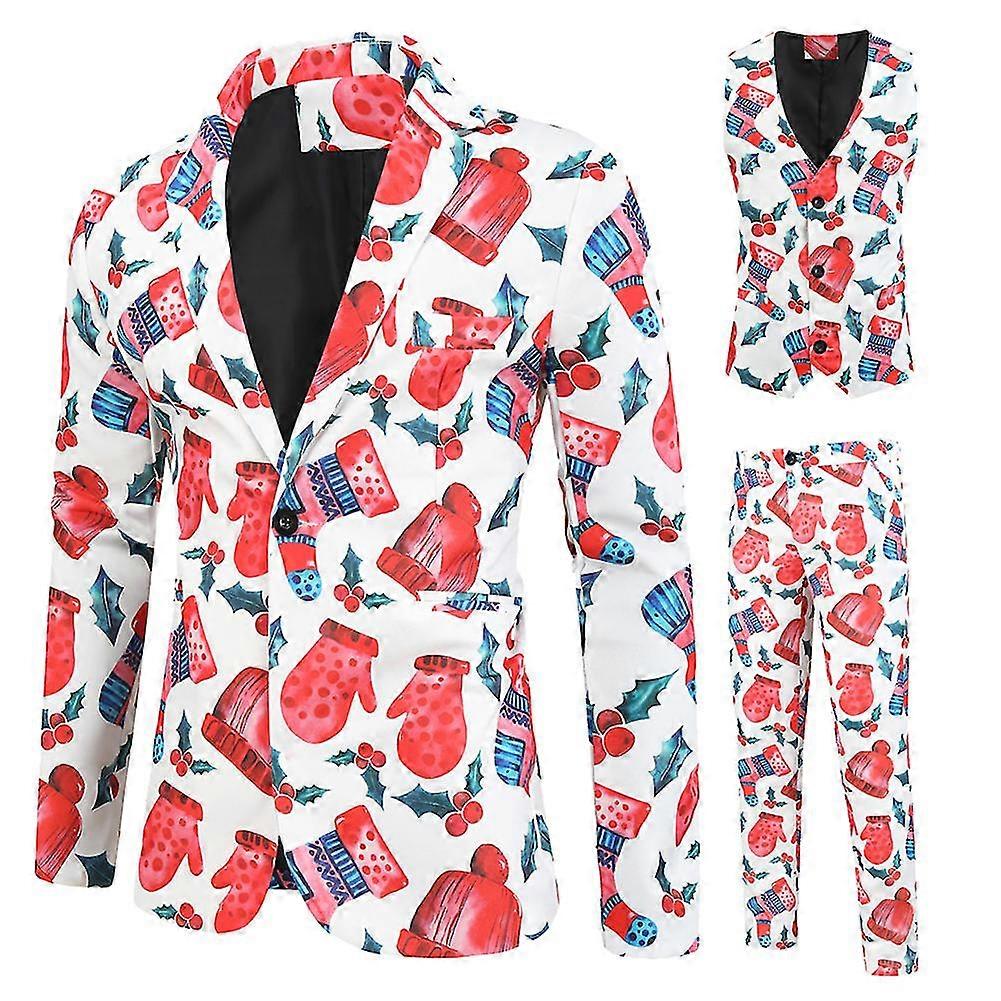 Mens Casual Printed Notched Lapel Single-breasted Three-piece Slim Suit For Christmas Party Family Gathering