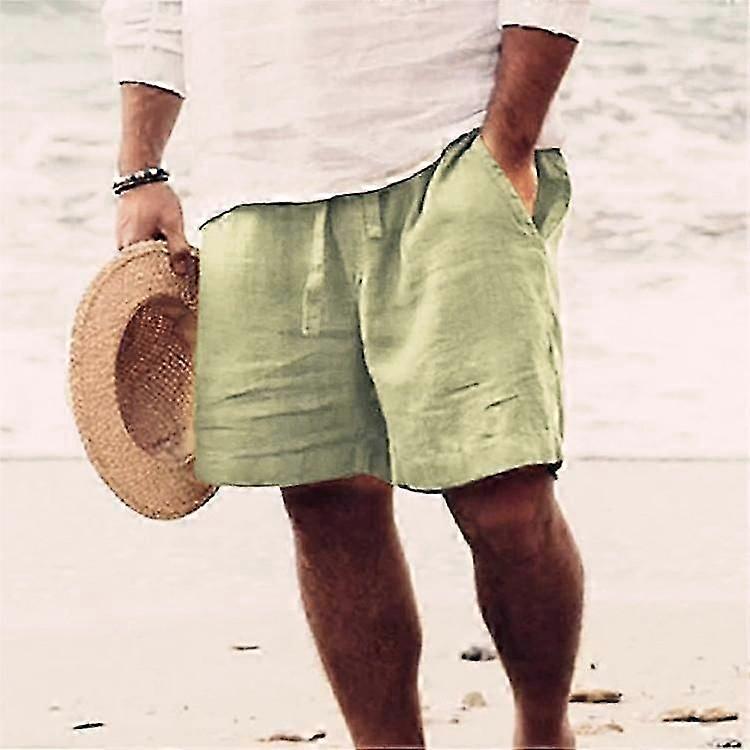 Men's Cotton Solid Color Lightweight Gym Shorts Linen Beach Jogging Sport Pants