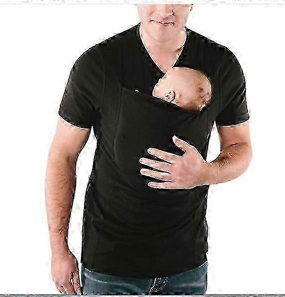 Men's V-Neck Baby Carrier Shirt for Dad & Infant, Cotton Kangaroo T-Shirt with Breathable Short Sleeve