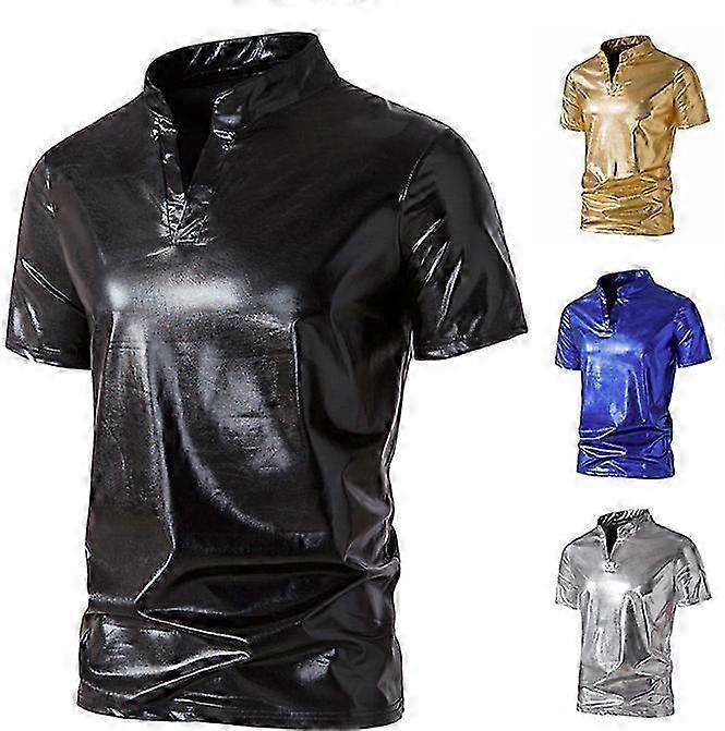 Men's Solid Color Gold Foil Short Sleeve T-Shirt Glossy Shirt
