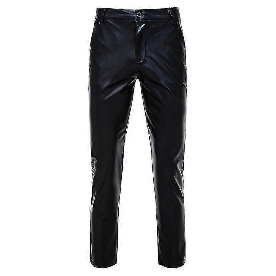 Mens Night Club Metallic Moto Jeans Trousers Disco Straight Leg Trousers