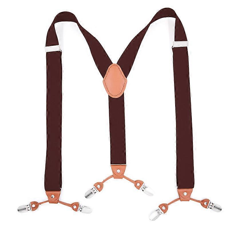 Mens 4 Metal Clip Elastic Wide Suspenders Both Casual And Formal(1pcs-brown)