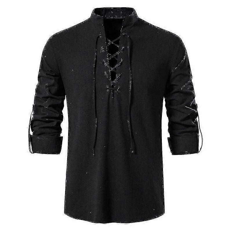Mens Scottish Jacobite Ghillie Kilt Shirts Medieval Renaissance Pirate Costume Long Sleeve Lace Up Henley Shirt Men Camisas Xxl-zong