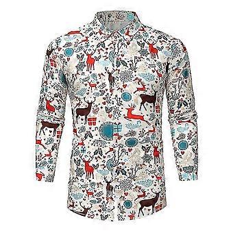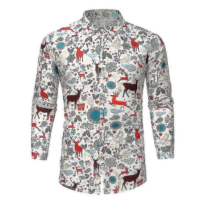 Mens Elk Print Christmas Shirts Single Breasted Travel Blouse Snowman Printed Tunic Shirt Jb Jb