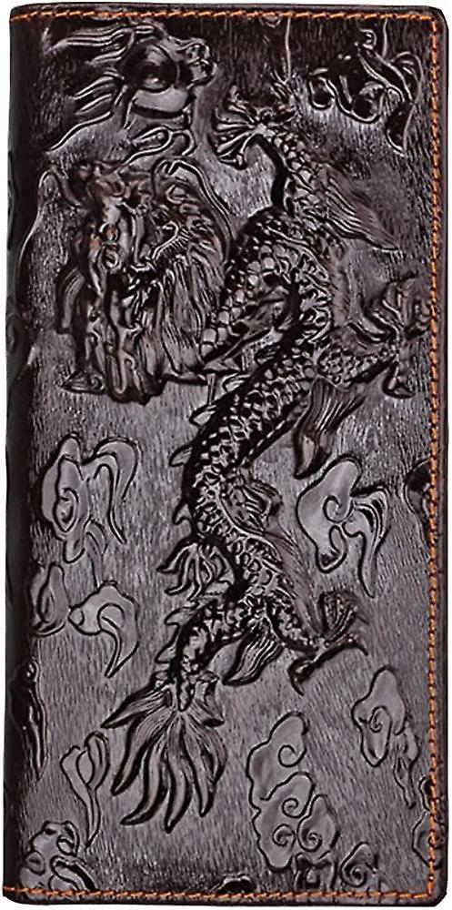 Mens Brown Genuine Leather Wallet With Credit Card Holder Dragon Pattern