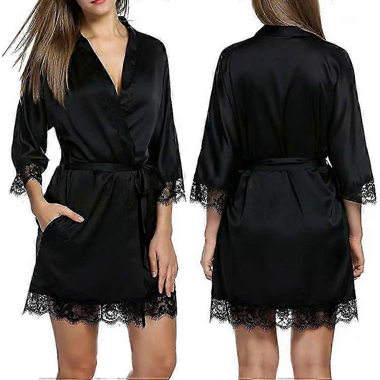 Silk Robes for Women Lace Trim Short Satin Sleepwear Bride Robe