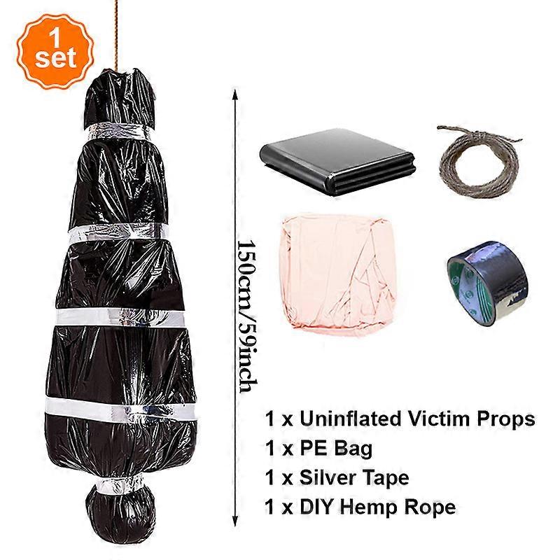 Horror Halloween Outdoor Decoration 59inch Creepy Corpse Props Set Scary Fake Bloody Body Bag Haunted House Hanging Decorations