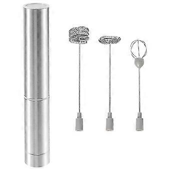 [Durable and Safe]-Electric handheld coffee frother is made of food grade stainless steel, it won't rust, delivers double the power of other frothers. [Easy to Clean and Store]-After use this milk frother, just put the whisk in running water and briefly turn it on - instantly clean! [Three Layers of Whisk]-Three layers are different from others, double the power of other frothers and professional espresso makers available.you can spend less time and can create thicker foam. [Easy to Use]-Simple one-touch switch with a powerful motor but it has low noise level. Just put it into a container with liquid food up to approx 1/3 to froth. Battery operated and 3 AAA batteries (excluded)<br><br>Product Name: Milk Frother Electric Colour: silver Material: ABS+stainless steel Size: 3.2 x 23.9cm<br><br>Package Contents: 1 x agitator host 1 x sleeve 3 x different mixing heads<br><br>Only the above package content, other products are not included. Note: Light shooting and different displays may cause the color of the item in the picture a little different from the real thing. The measurement allowed error is +/- 1-3cm.
