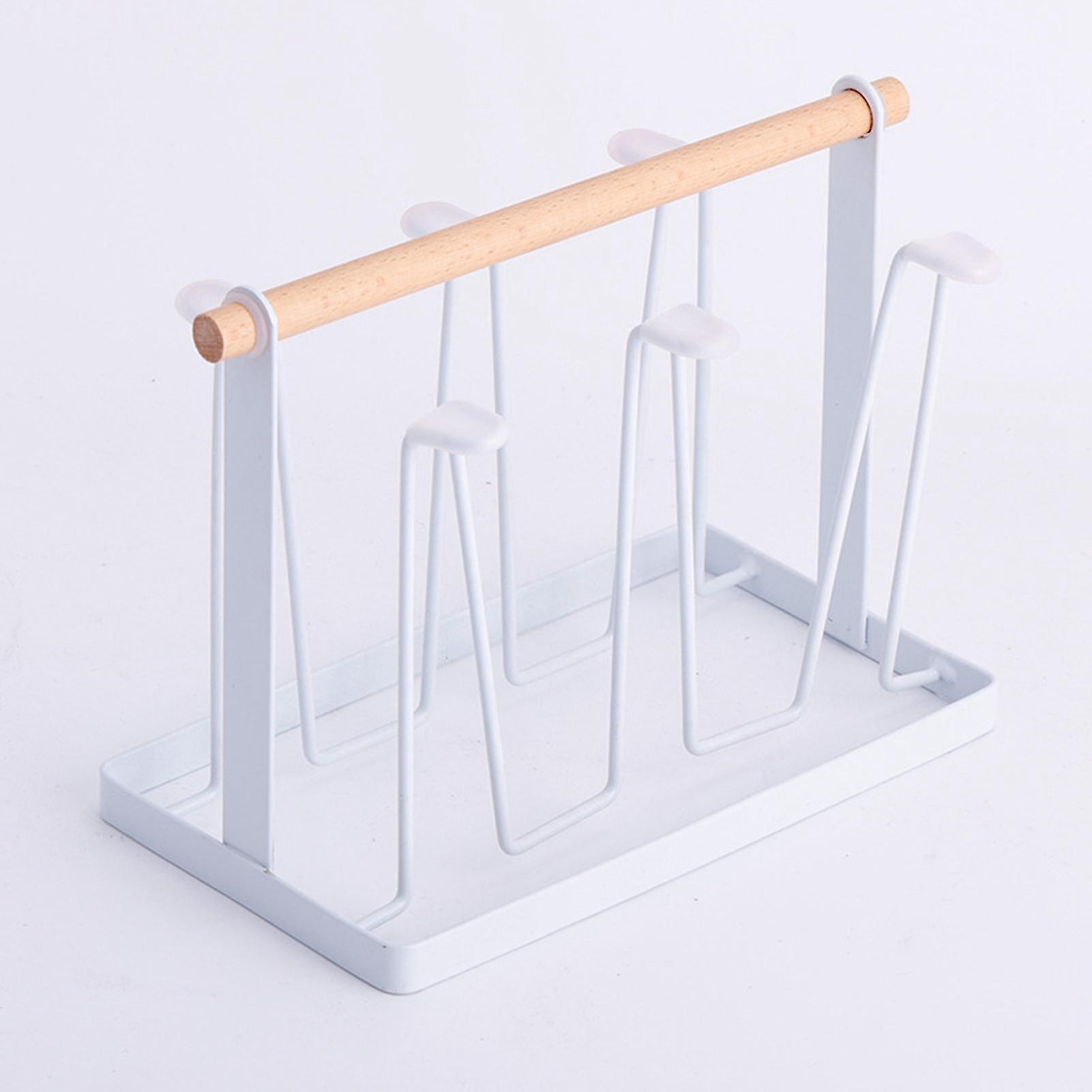 Cup Drying Rack 6 Hooks Wooden Handle Electroplating Iron Art Space Saving 13x23.5x18.5cm Mug Organizers for Home Office White