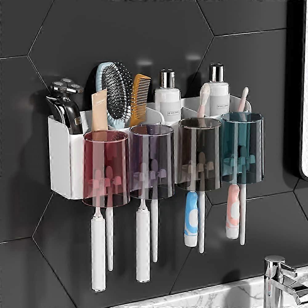 Multifunction Bathroom Storage Rack with 4 Cups+8 Slots Toothbrush Heads Shelf31.6*11*15.3cm