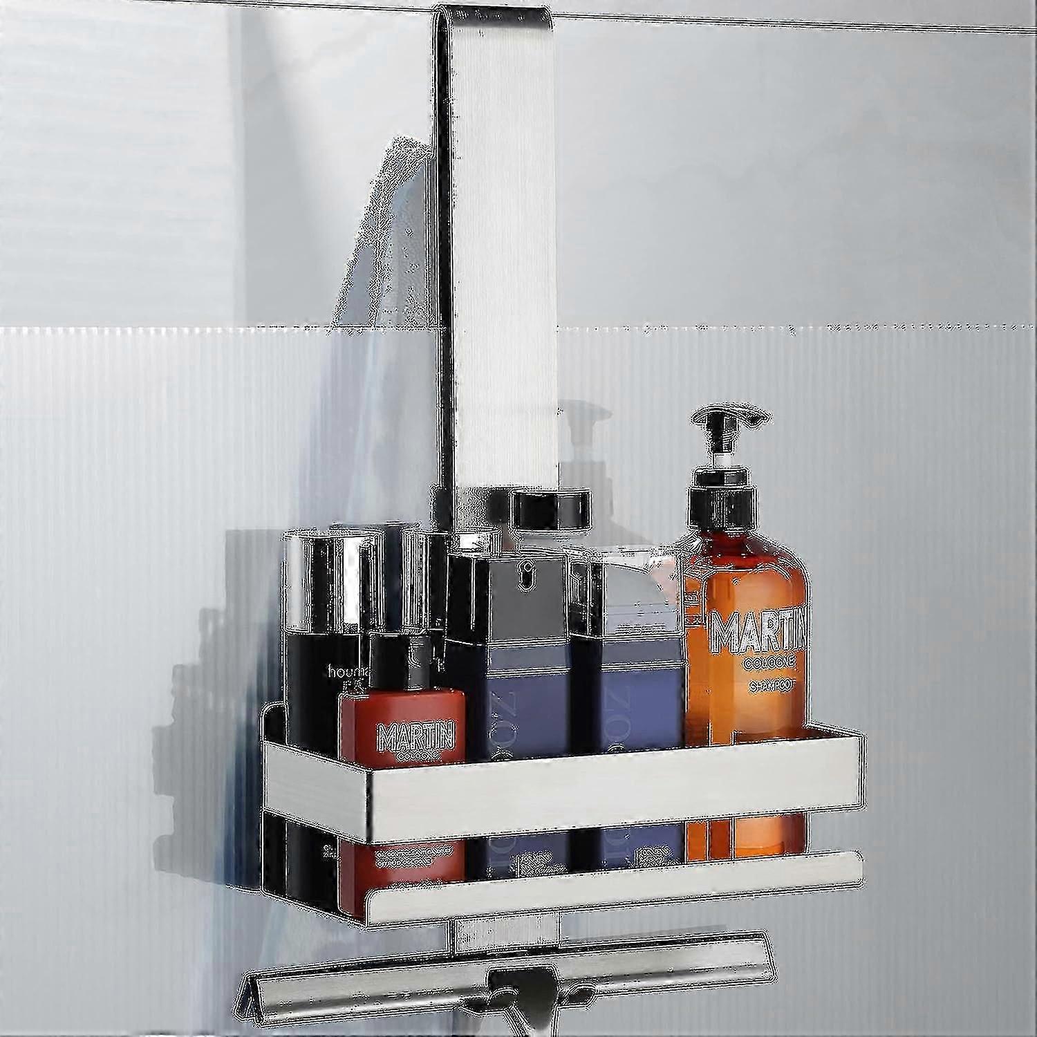 Hanging Shower Rack - Stainless Steel Shower Rack For Hanging Glass Shower Enclosures, Shower Basket With Hook For Frameless Glass Door