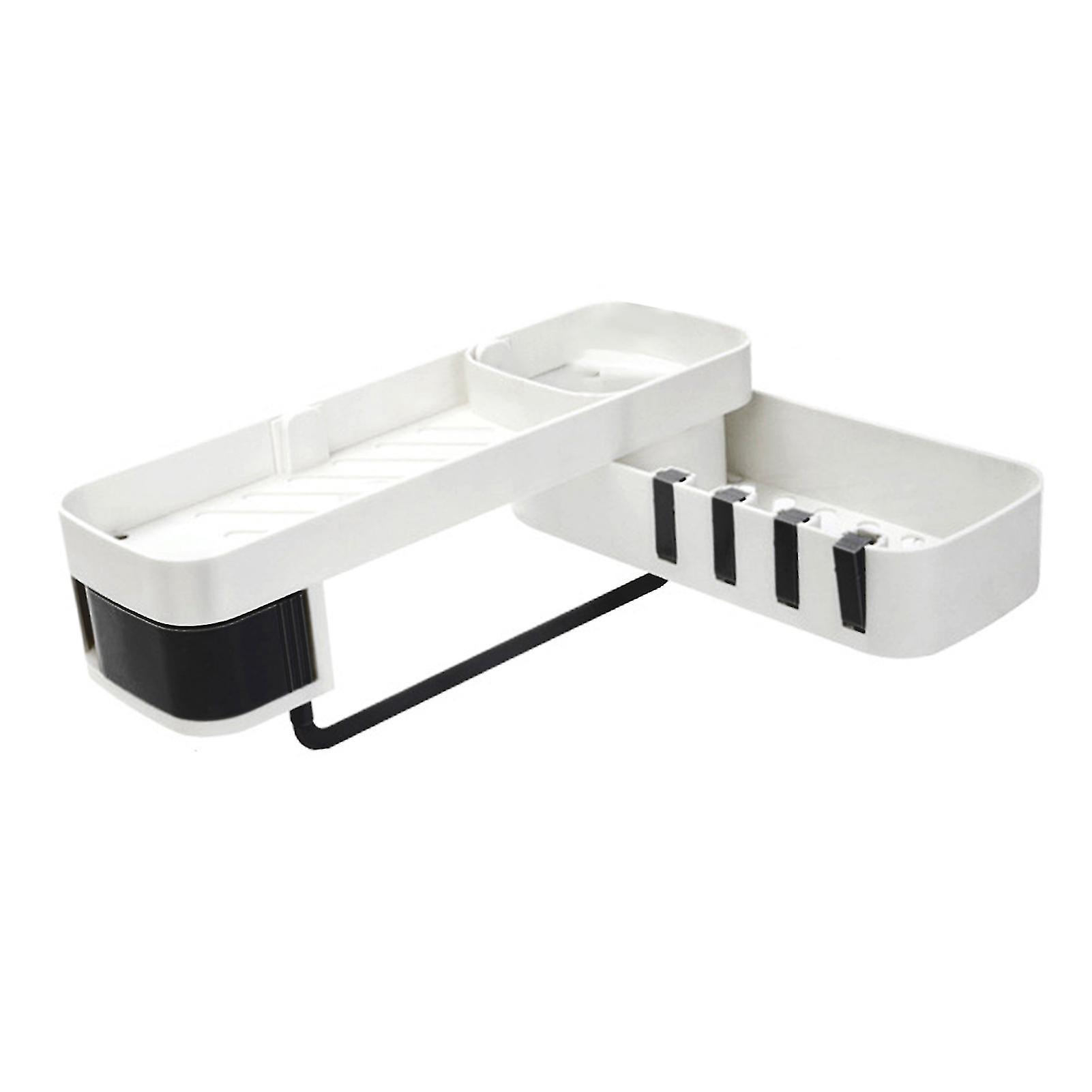 Bathroom Corner Shelf Multifunctional Double Layer Storage Rack Kitchen Non Marking Wall Mounted Holder White Black