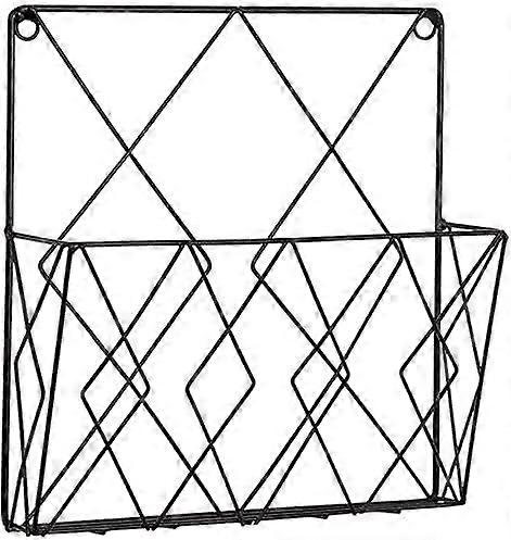 Wall Mounted Magazine Rack, Newspaper Bookcase Storage Rack Black Wire Metal Basket Decorative Rack