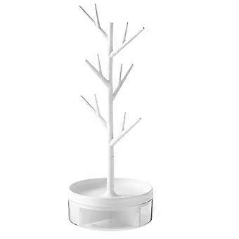 Branch Jewelry Rack With Rotatable Base And Storage Box Tree Tower Rack Hanging Organizer, White