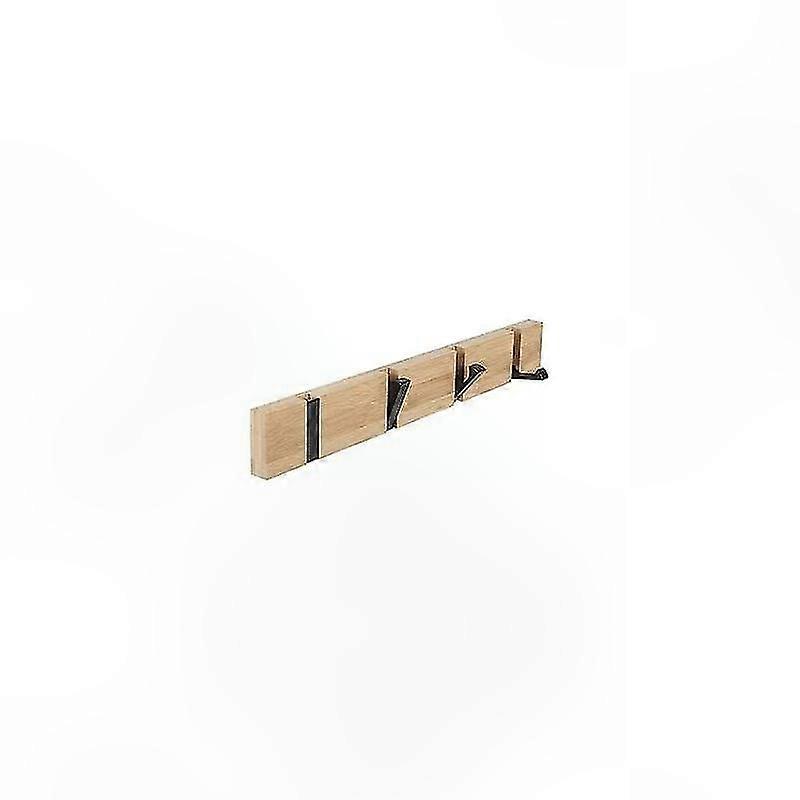 Retractable Wall Coat Rack with 4 Hooks for Coats, Scarves, Bags, Natural Finish