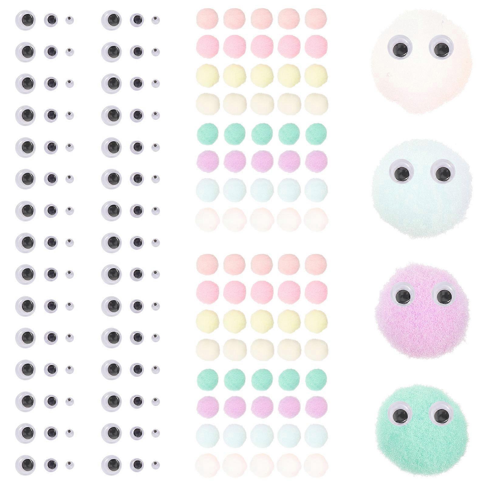 Fluffy Pom Poms With Eyes 1 Set Assorted Color Craft Supplies For DIY Enthusiasts Decorating 300Pcs