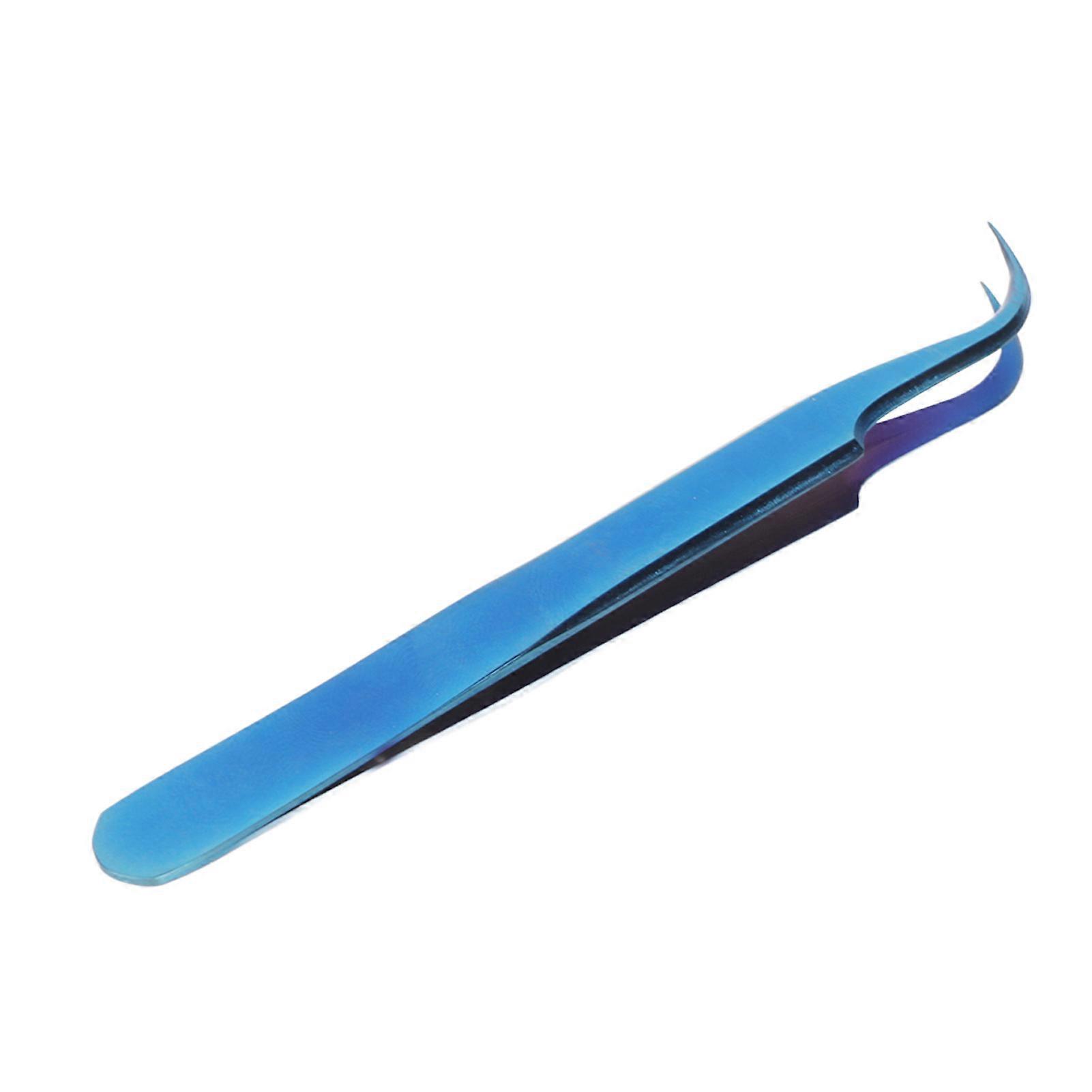 Eyelash Applicator Tweezers Stainless Steel Accurate Tip Lightweight Make Up Lash Extension Tweezers Blue Curved Tweezers