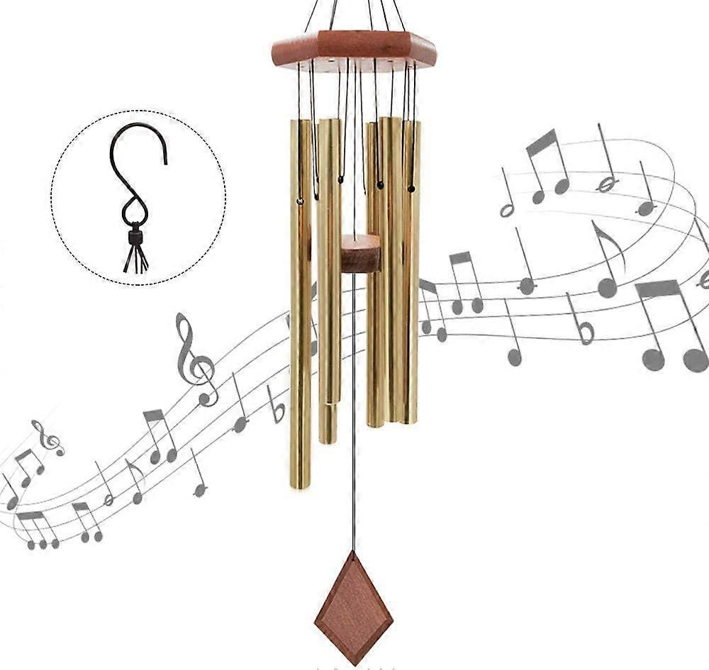 Outdoor Wind Chime 26" Medium Deep Tone with 6 Aluminum Tubes Soothing Sympathy Gift for Mother Birthday Garden Patio Home Decor Gold Tone (With S Hoo