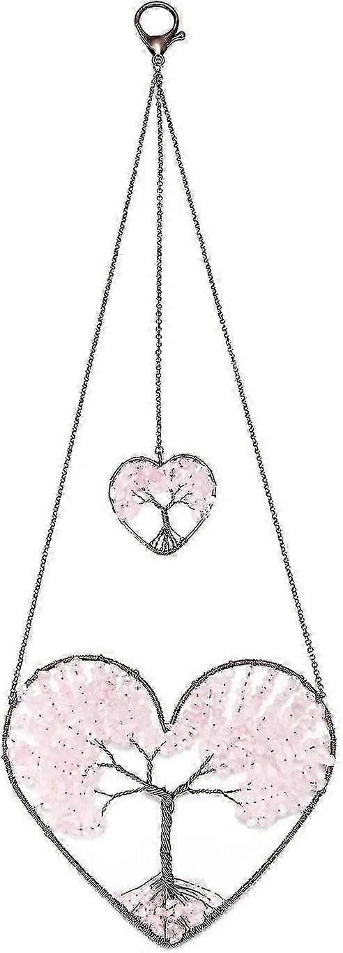 Rose Quartz Heart Tree Of Life Dream Catcher Hanging Ornament Bohemian Pink Double Hearts Tree Of Life Crystal Window Car Wall Art Hanging Decorations