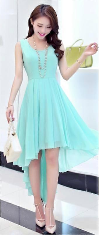 Romantic Mint Blue Pleated Asymmetrical Hi Lo Party Dress