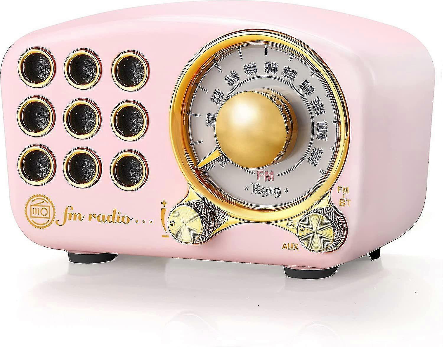 Retro Bluetooth Speaker, Fm Radio With Old Classic Style, Bass Boost, Bluetooth 4.3 Connection,pink