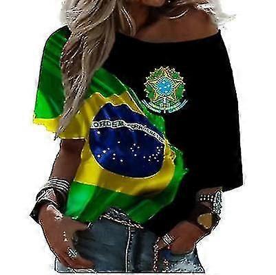 Reedca 2022 Brazil Flag 3d Printed Women's T-shirt Party Football Stadium Fashion Short Sleeve (1,xs)