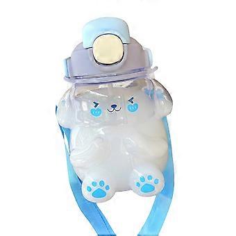 Cute Rabbit Water Bottle With Straw Large Capacity Plastic Drinking Bottle With Adjustable Shoulder Strap For Camping Sports Travel Picnic