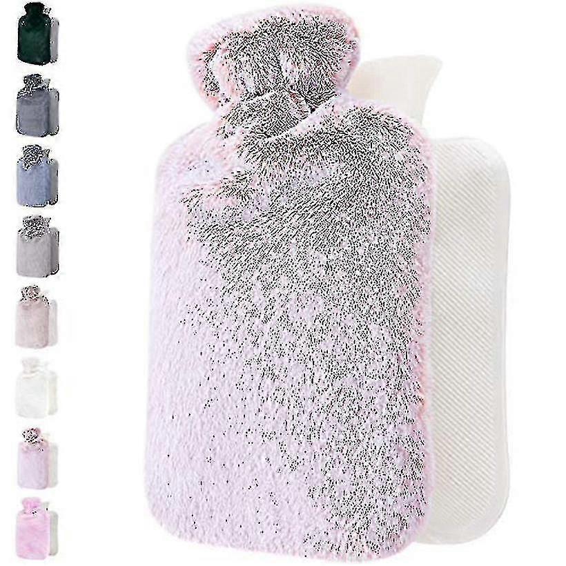 Hot Water Bottle With Fluffy Cover Soft Premium Faux Fur Cover Hot Water Bag For Cosy Nights Pain Relief Great Gift